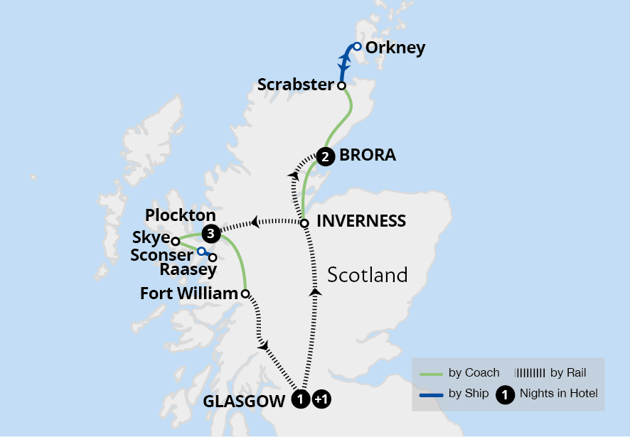 Your holiday begins in Glasgow, where you arrive independently to the hotel, meeting the Tour Manager and rest of the group.